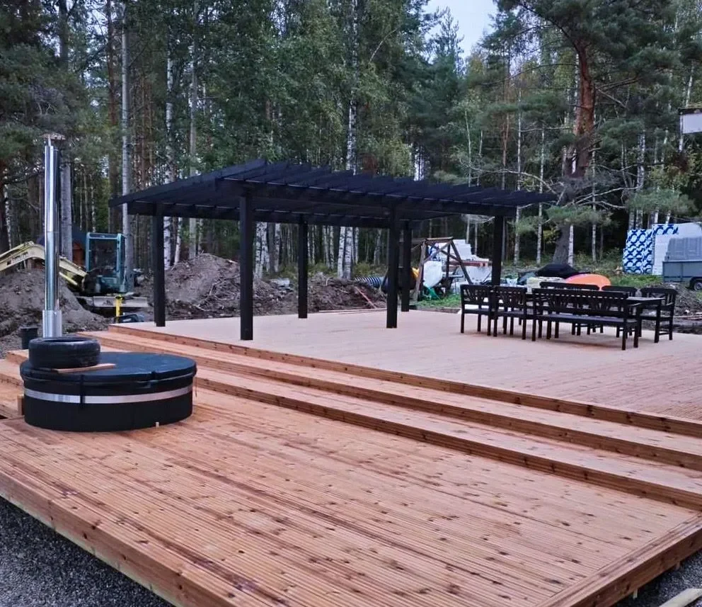 Virkistysalueen rakentaminen: sisältää ulkoilualueiden rakentamisen, nuotiopaikat, terassiin rakentamisen sekä saunatilojen saneeraamisen.